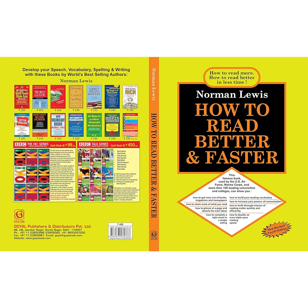 How to Read Better & Faster by Norman Lewis is a timeless classic designed to help readers enhance their reading speed, comprehension, and retention. With practical exercises and proven techniques, this book trains readers to absorb information quickly and efficiently ? an essential skill for students, professionals, and lifelong learners.