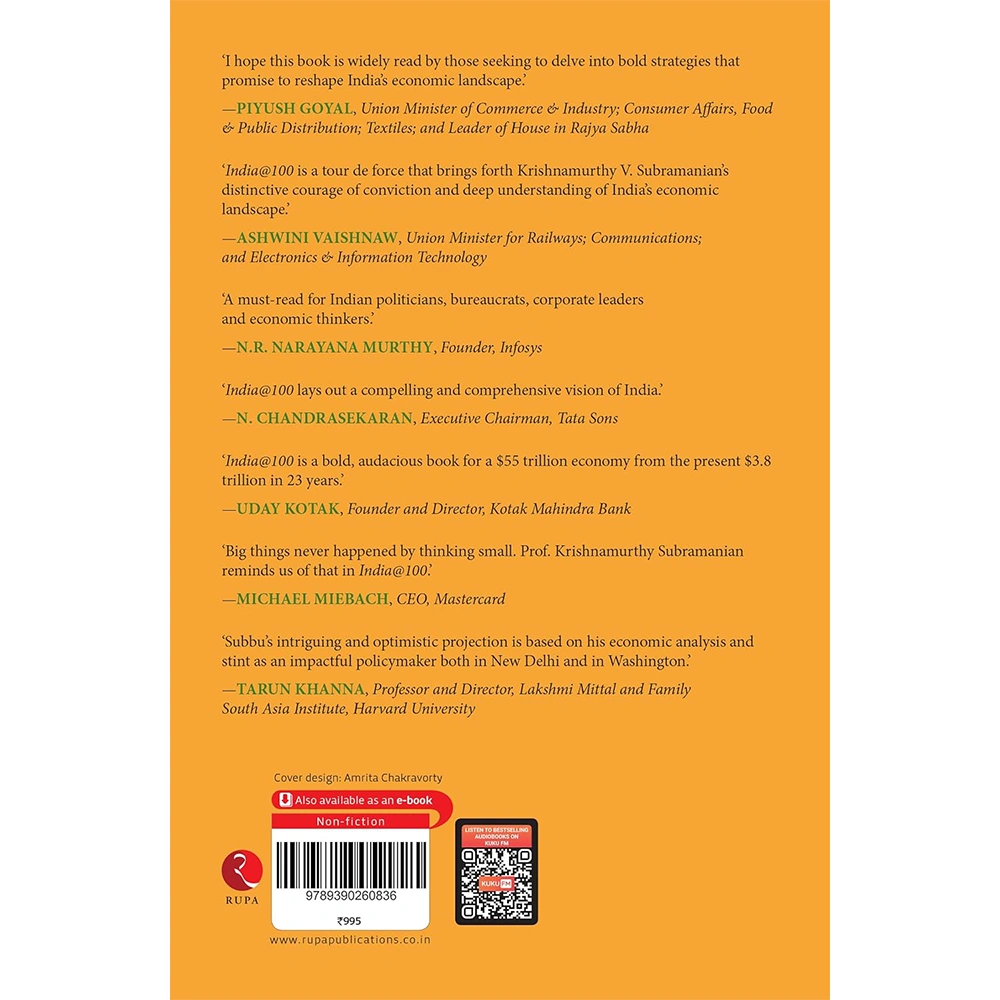 In India@100: Envisioning Tomorrow?s Economic Powerhouse, Krishnamurthy Subramanian explores this once-in-several-centuries opportunity knocking on India?s doors. With a bold vision grounded in Indian realities, India@100 argues compellingly that India is at an inflection point that cannot be ignored. The country can grow at 8 per cent annually by reforming the economy zealously and doubling down on the sound policies implemented post 2014. Since 2007, when its GDP per capita was equal to India?s current level, China exploited its demographic dividend to grow at about 8 percent for about two decades. Similar growth for the next two decades will make India a $55 trillion economy by 2047.