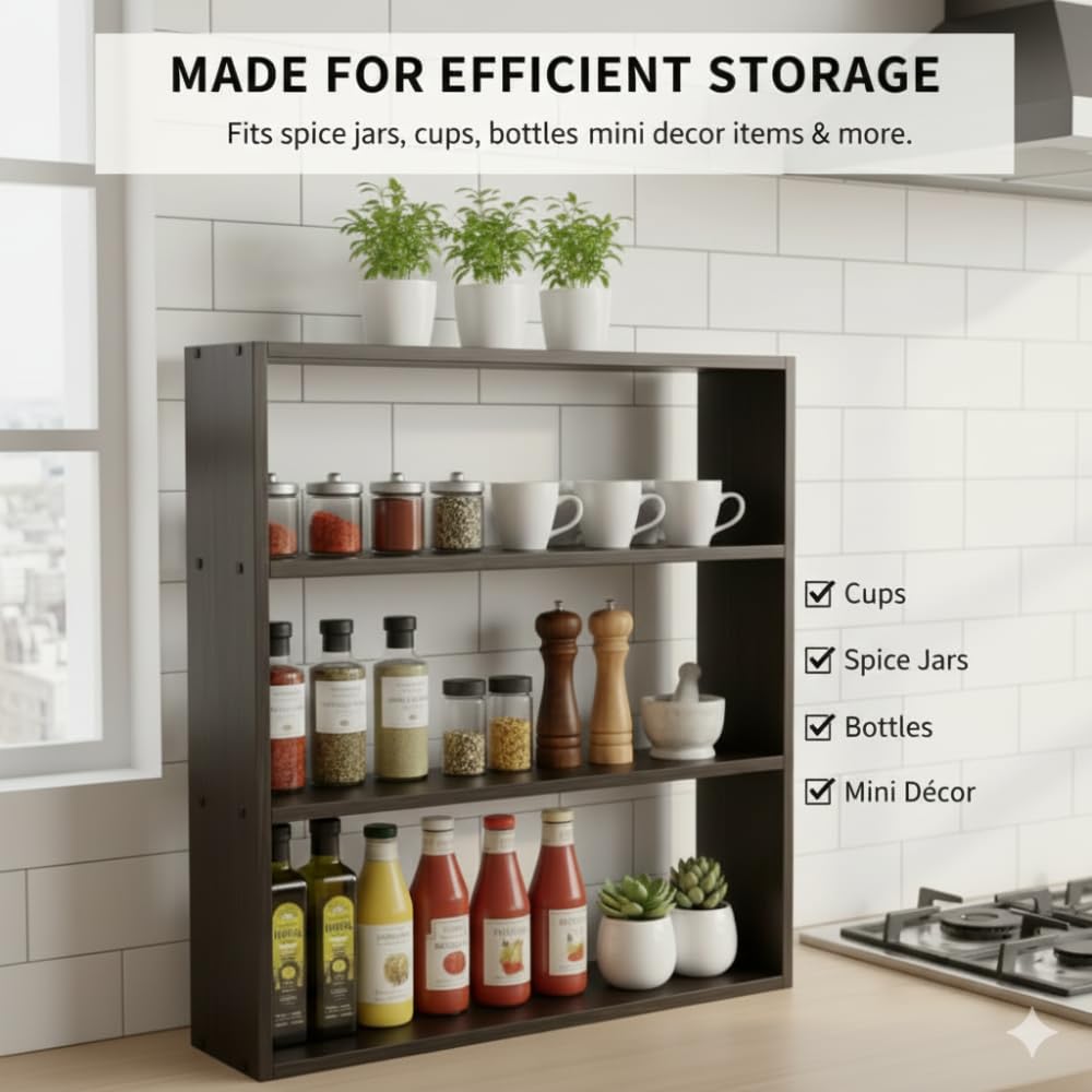 Upgrade your kitchen organization with the Tier Wooden Wall Shelf — a practical and stylish storage solution for modern homes. Designed to free up counter space, this wall-mounted rack helps you neatly organize spices, condiments, jars, bottles, cups, and more. Made from high-quality engineered wood, it offers strength, durability, and resistance to everyday wear.